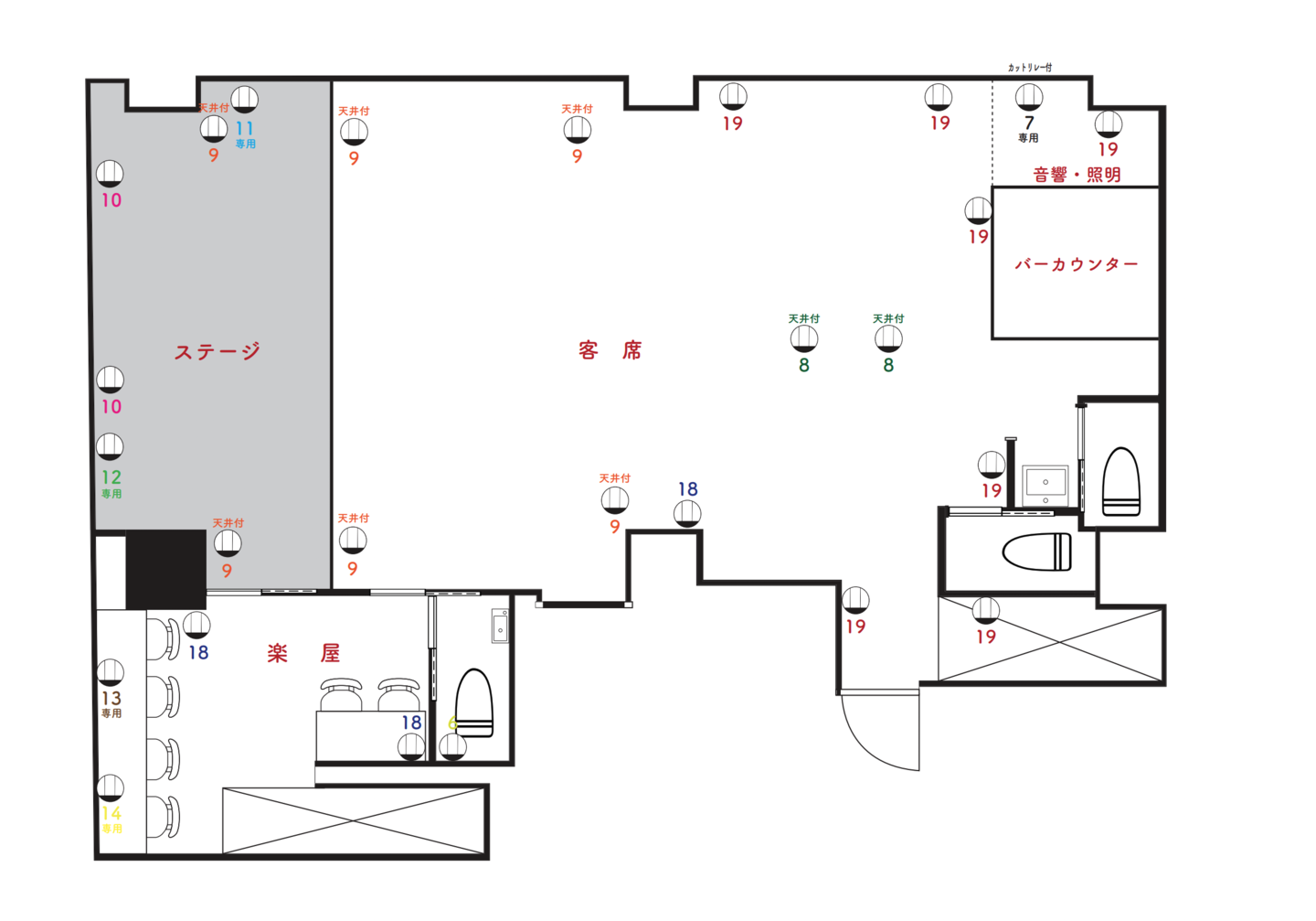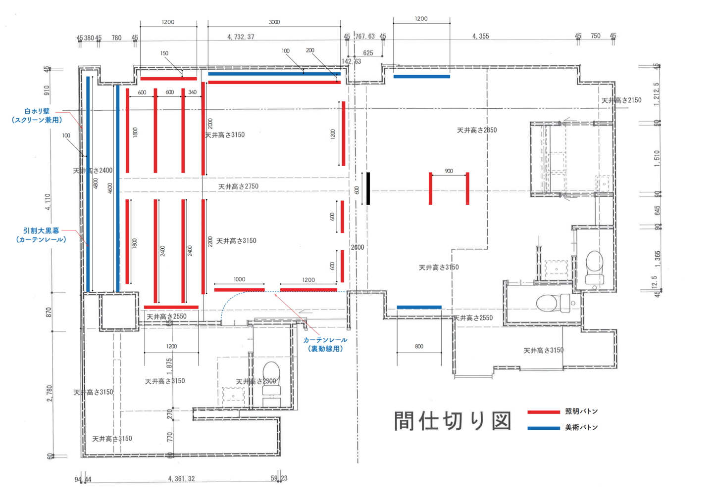 ・ステージ奥壁 (黒幕を開けると白壁のスクリーンになります)